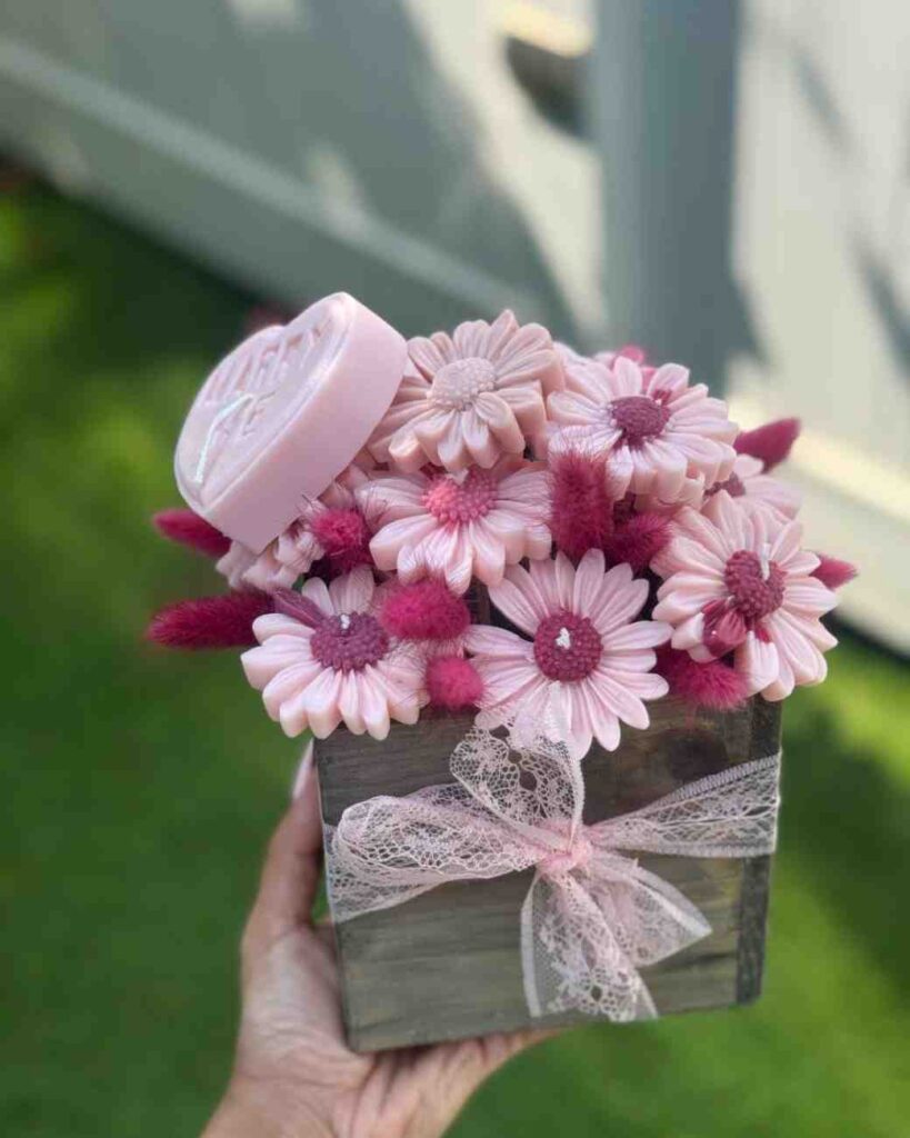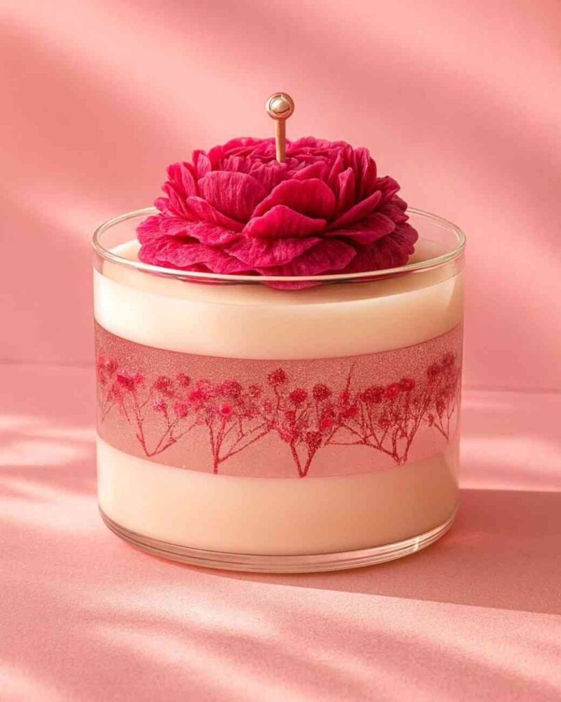 Arranged against soft fabrics and surrounded by pink blossoms, these candles feel romantic, feminine, and soothing perfect for gifting, bedside décor, self care rituals, or elevating any room with a touch of floral beauty. They’re not just candles; they’re floral inspired art pieces that fill your space with elegance and peace.
