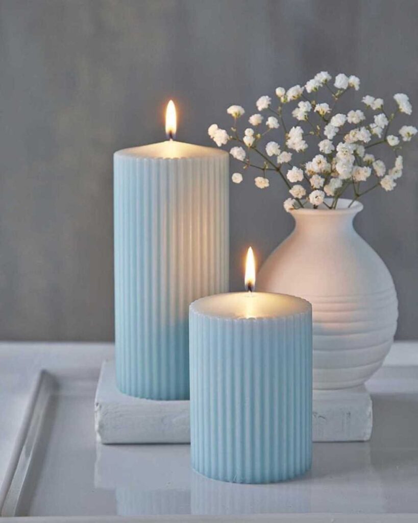 12.Soft Blue Ribbed Candles