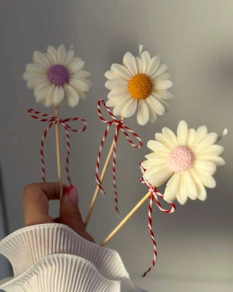 16.Handcrafted Daisy Stick Candles for Whimsical Décor