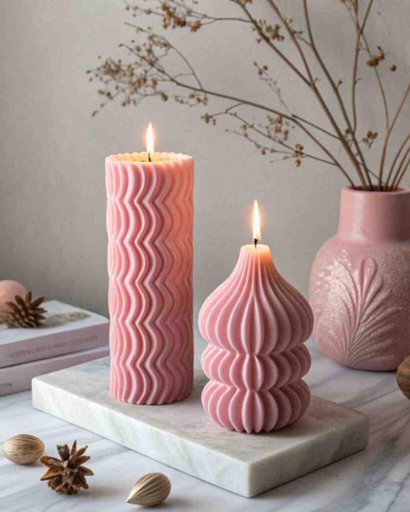 7.Elegant Pink Sculpted Candles