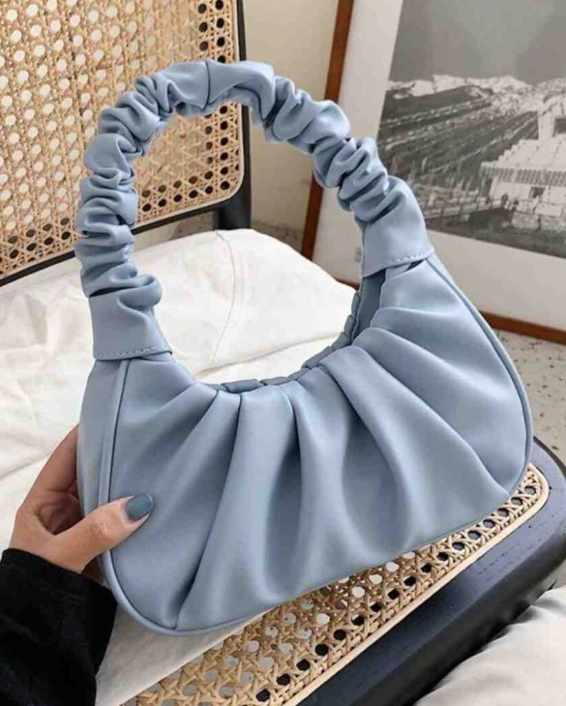 Soft Blue Ruched Handle Bag has a beautiful pleated design that gives it a gentle, stylish look. The ruched handle adds a cute and trendy touch, making the bag easy to carry and comfortable to hold. Its smooth finish and calm blue color make it perfect for everyday use.