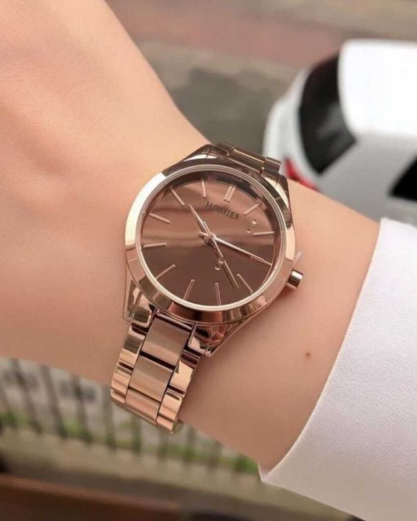 Stylish Rose-Gold HOWMES Ladies Watch has a beautiful rose gold shine that makes it look elegant and modern. The brown toned dial matches perfectly with the metallic strap, giving the watch a smooth and luxurious look. The simple hour markers and slim hands keep the design clean and classy.The watch features a solid metal bracelet that sits comfortably on the wrist.