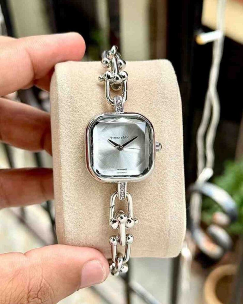 This chic timepiece features a polished silver-tone chain bracelet that doubles as a delicate jewelry piece ideal if you like watches that look like bracelets. The square watch face has clean lines and a subtle metallic dial that gives it a sleek and modern appearance.